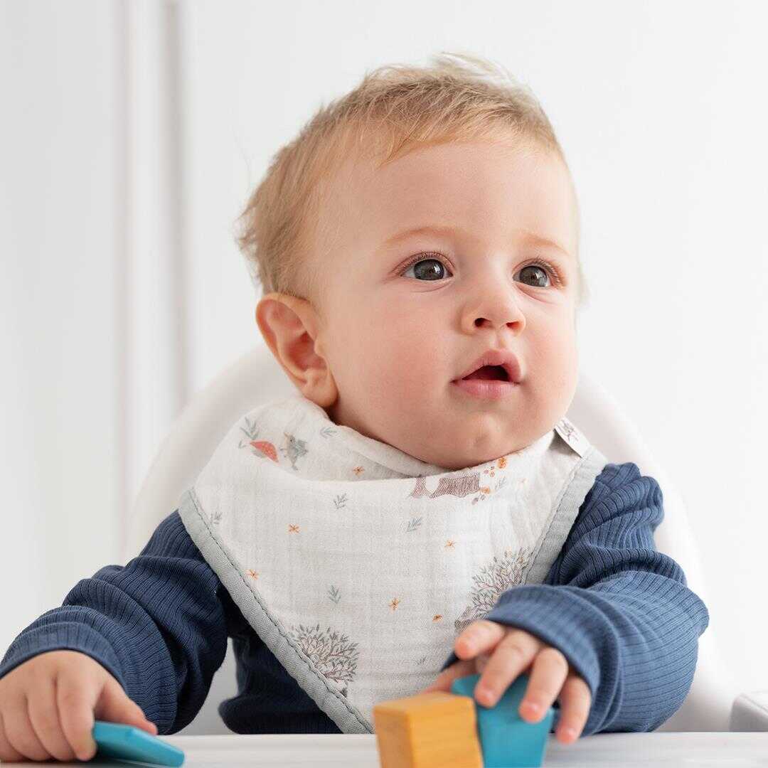 İki katlı müslin kumaş, yemek sırasında dökülenleri ve tükürük gibi sıvıları hızlıca emer, böylece bebeğinizin kıyafetleri temiz ve kuru kalır. Bebeğinizin cildine zarar vermeden onları kuru tutmanın en kolay ve pratik yoludur!