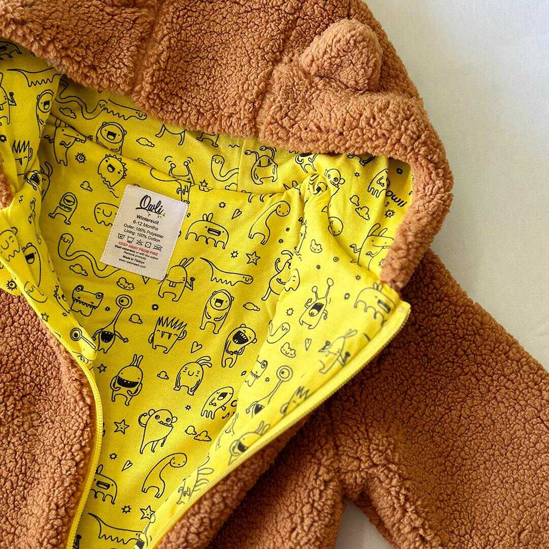 Owli Dış Tulum soğuk havalara karşı koyan yapısı, yumuşak ve nefes alan kumaşıyla tüm dış alan aktivitelerinde bebeğinizin en pofuduk koruması olacak.