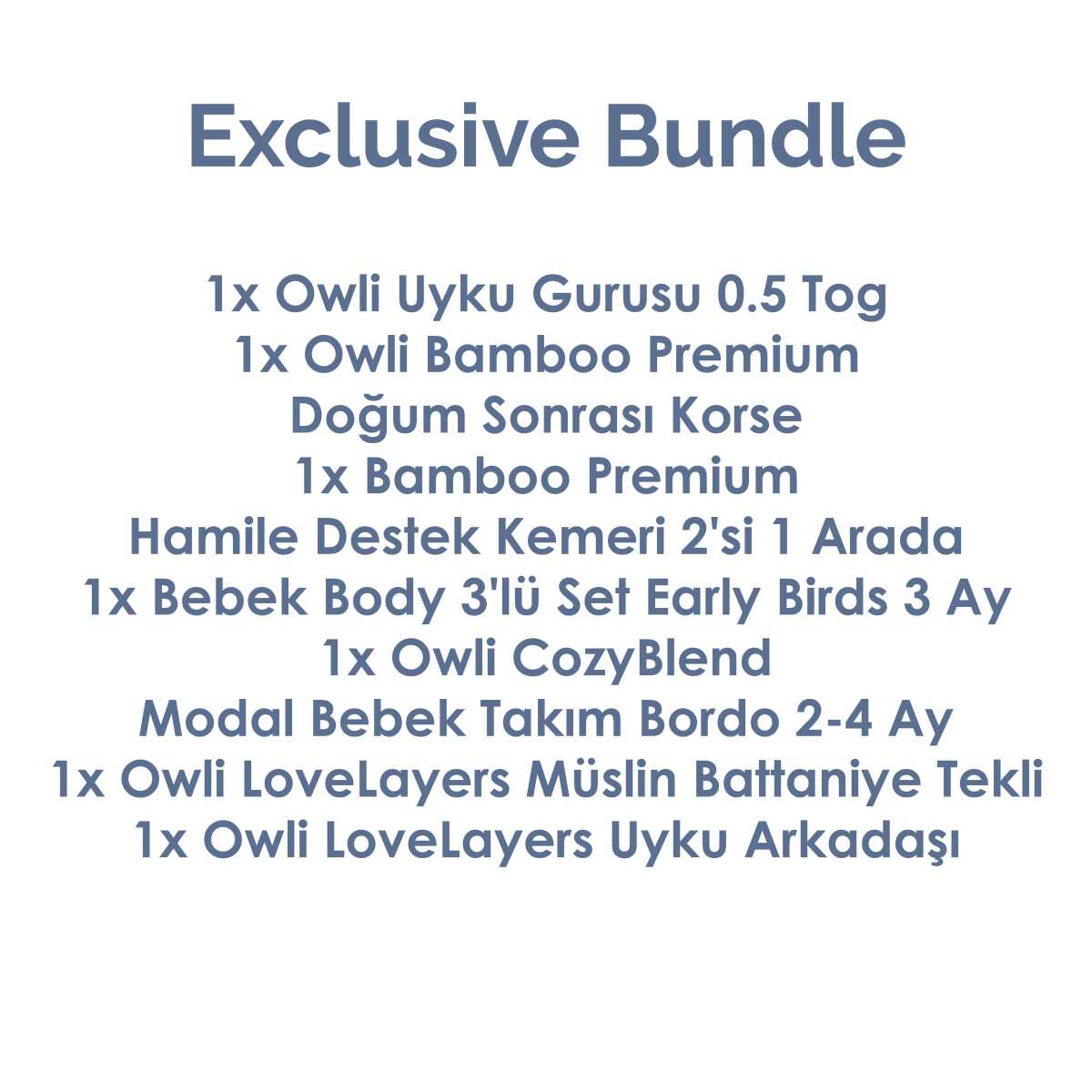 Set içeriğinde toplam 7 adet ürün bulunur. Owli Bundle kampanyası sınırlı sayıda stoklardan oluşmaktadır.