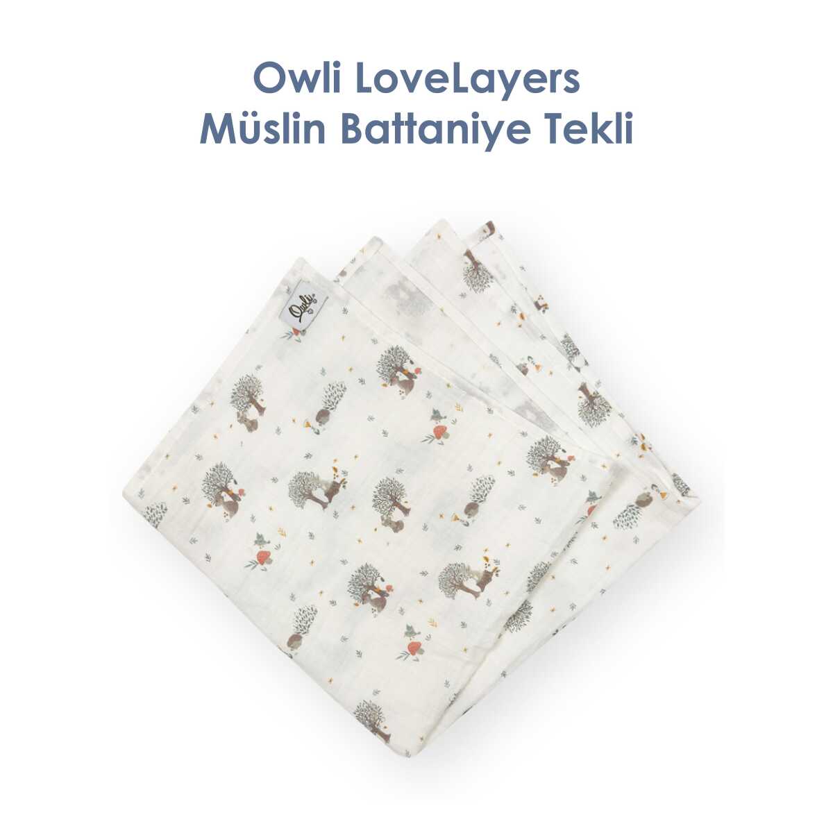1 Adet Owli LoveLayers 2 Kat Müslin Battaniye Forest 110x110*