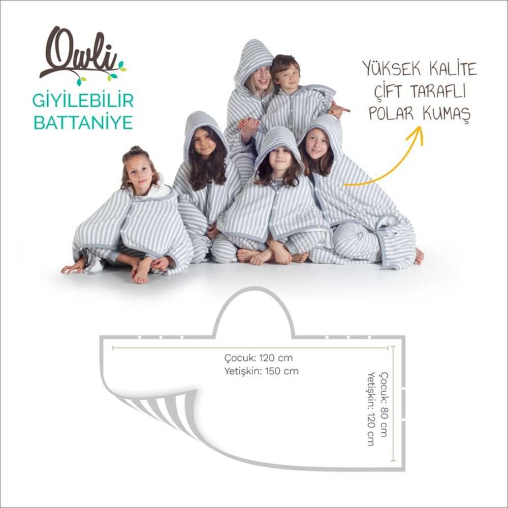Owli Giyilebilir Battaniye çocukların güne rahatlıkla başlaması, ne giysem derdi yaşamamaları için tasarlandı. Owli’yi kullanmak çok kolay, çocuklar yataktan çıkar çıkmaz ya da eve girer girmez hafif ve yumuşacık olan Owli Giyilebilir Battaniyeyi kolayca omuzlarına atabilirler. Güne süperkahraman olarak başlamak isteyen çocuklar bir pelerin gibi, hemen işe koyulmak isteyen çocuklarda çıtçıtlı kolları ile giyilebilir battaniye olarak kullanabilir.
