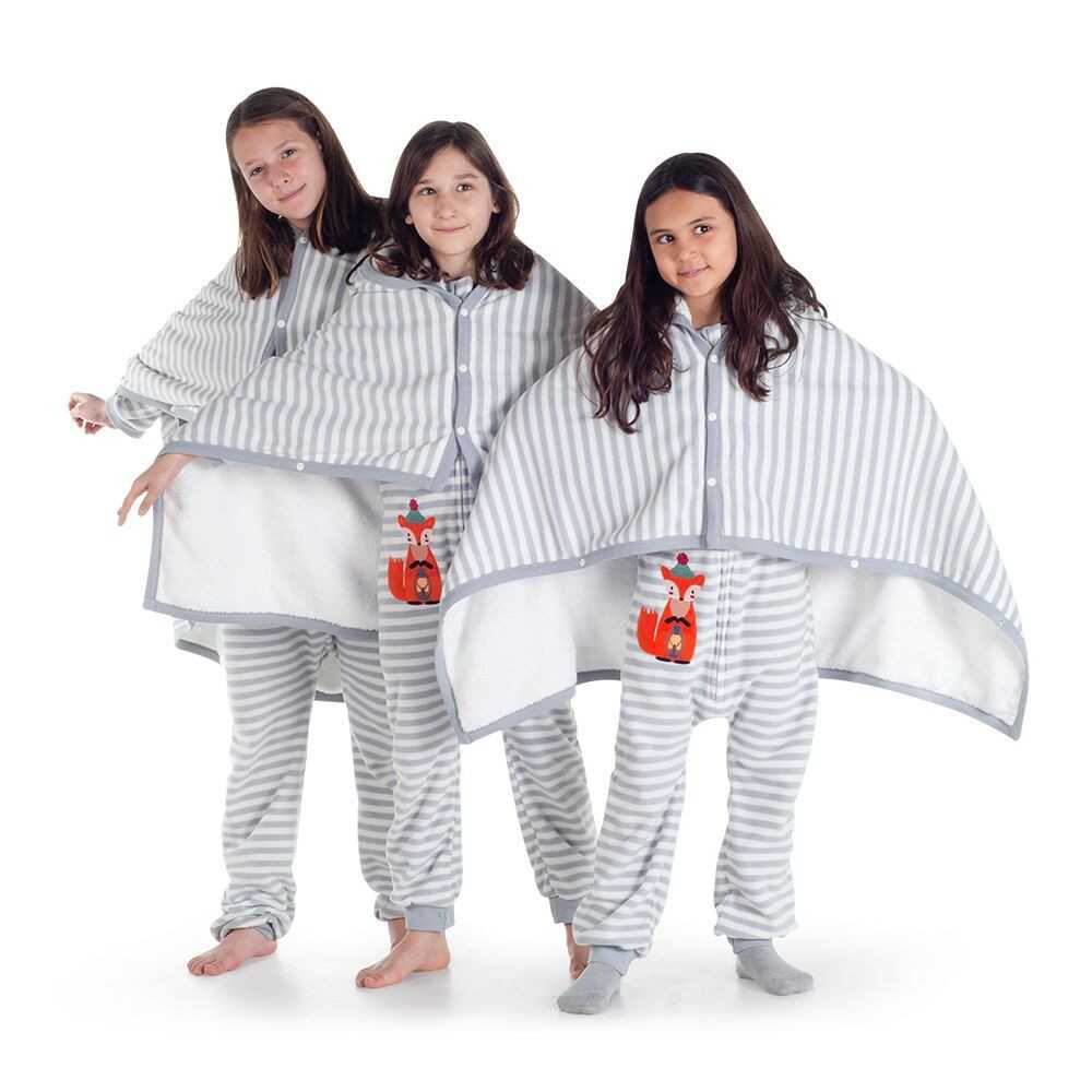 - Çıtçıtlı kolları ile ister pelerin gibi kullanın, ister giyilebilir battaniye olarak.