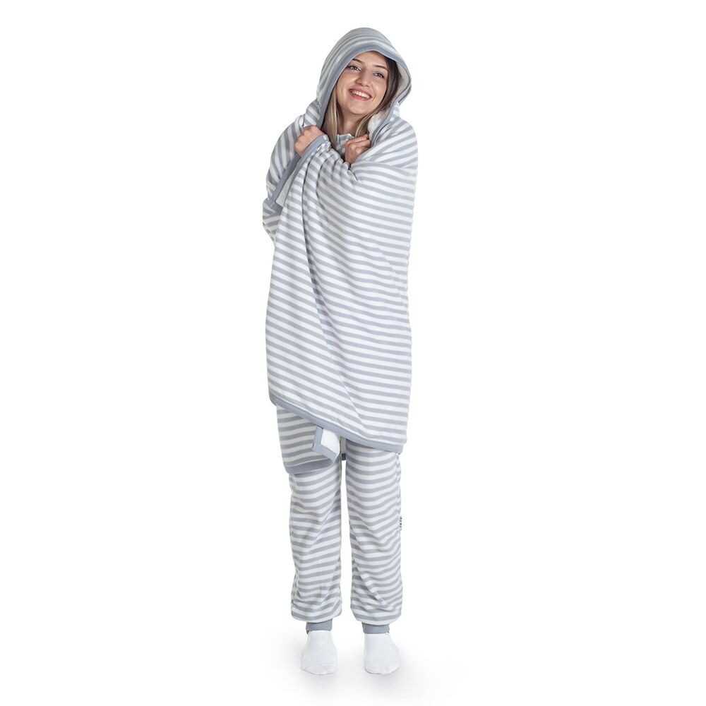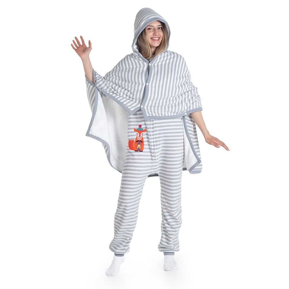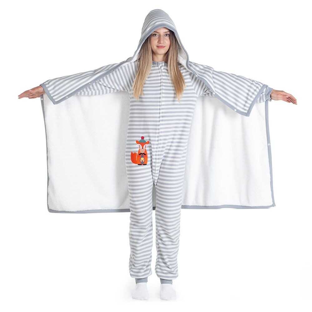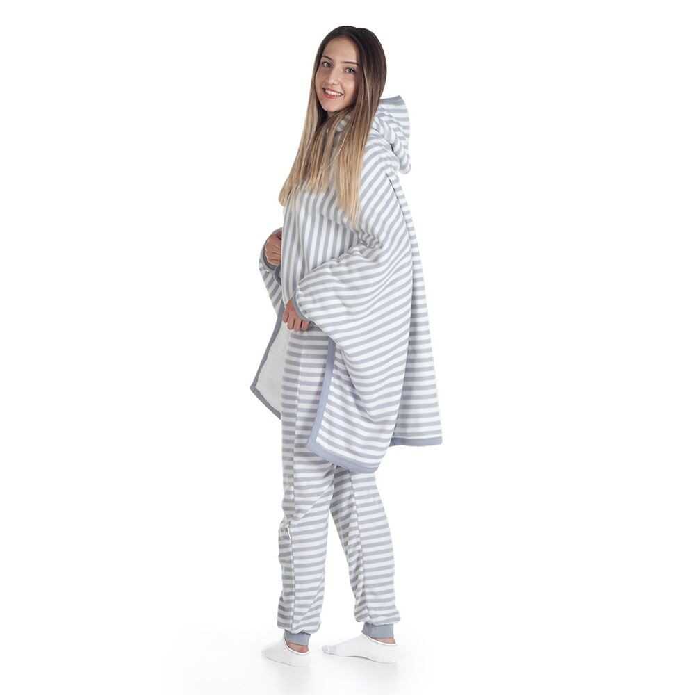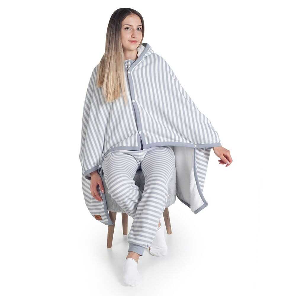 - Çıtçıtlı kolları ile ister pelerin gibi kullanın, ister giyilebilir battaniye olarak.