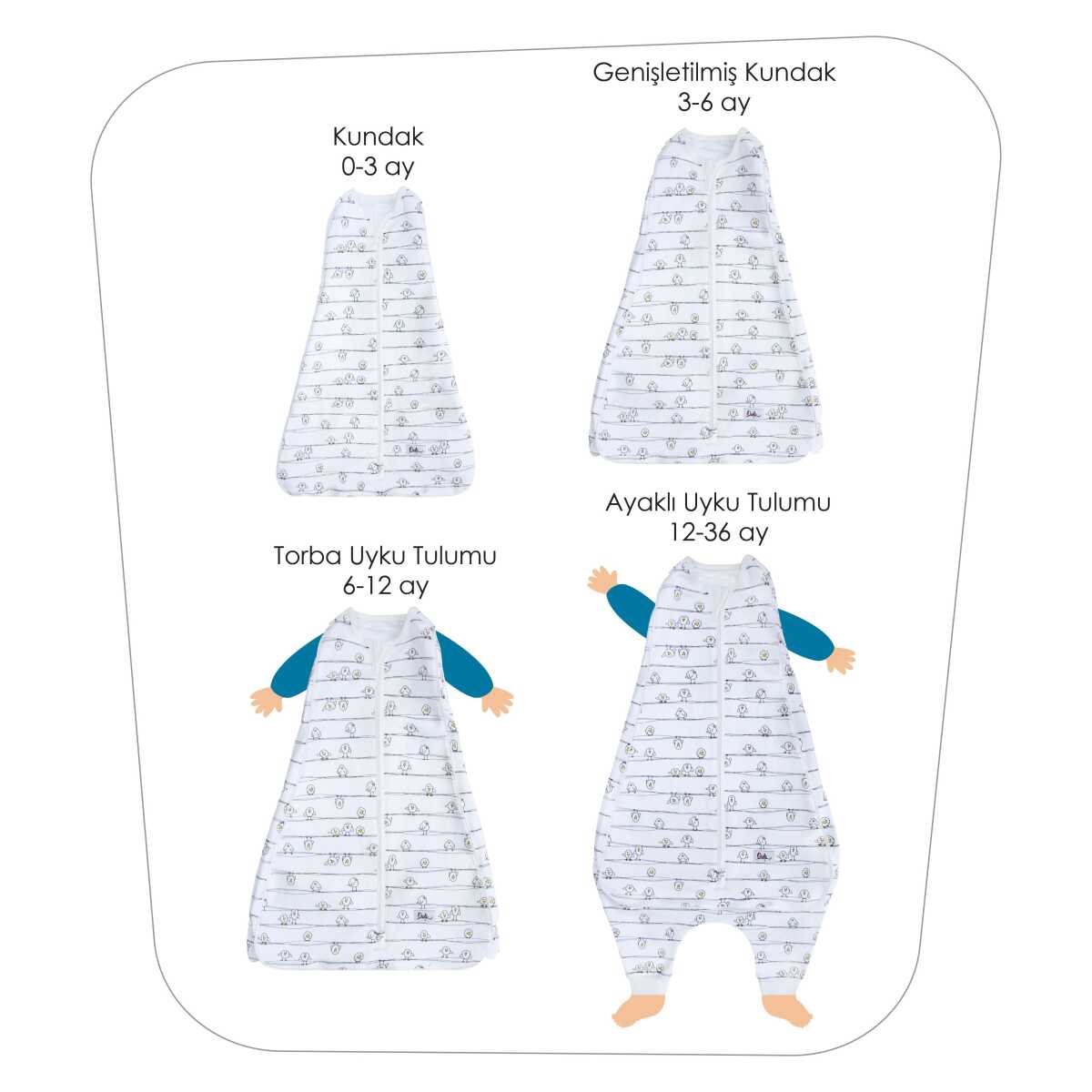 1 Adet Tasarım Ödüllü Owli Uyku Gurusu 4’ü 1 Arada Kundak/Uyku Tulumu 0-36 Ay (0.3, 0.5 Tog veya Cool seçimi yapınız)