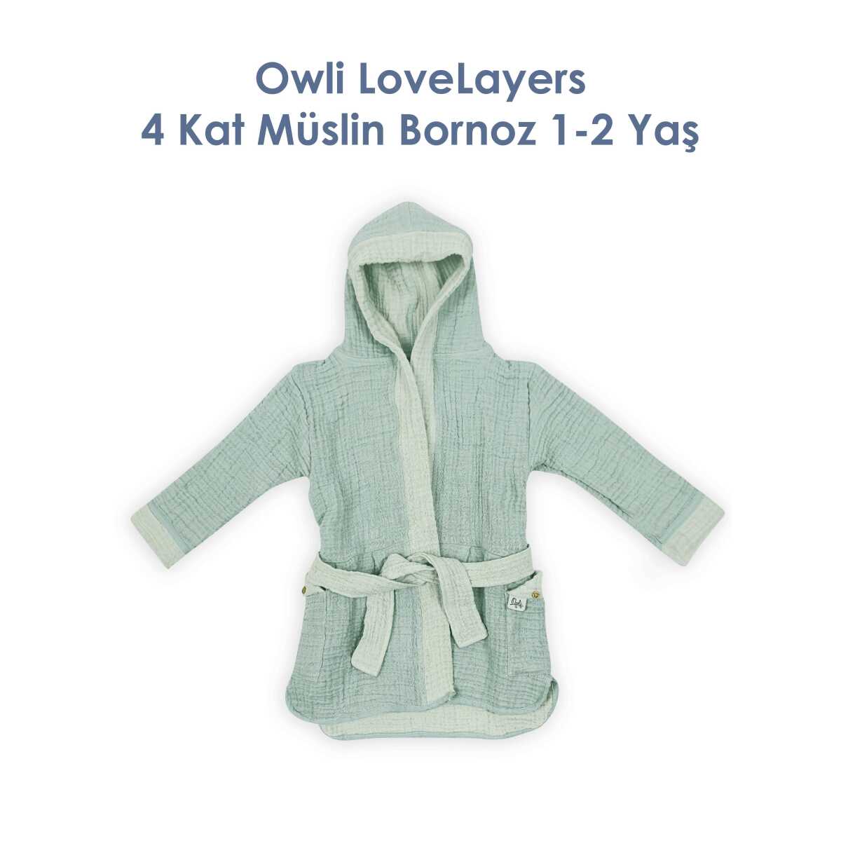 1 Adet Owli LoveLayers 4 Kat Müslin Bornoz Mint Yeşili 1-2 Yaş*