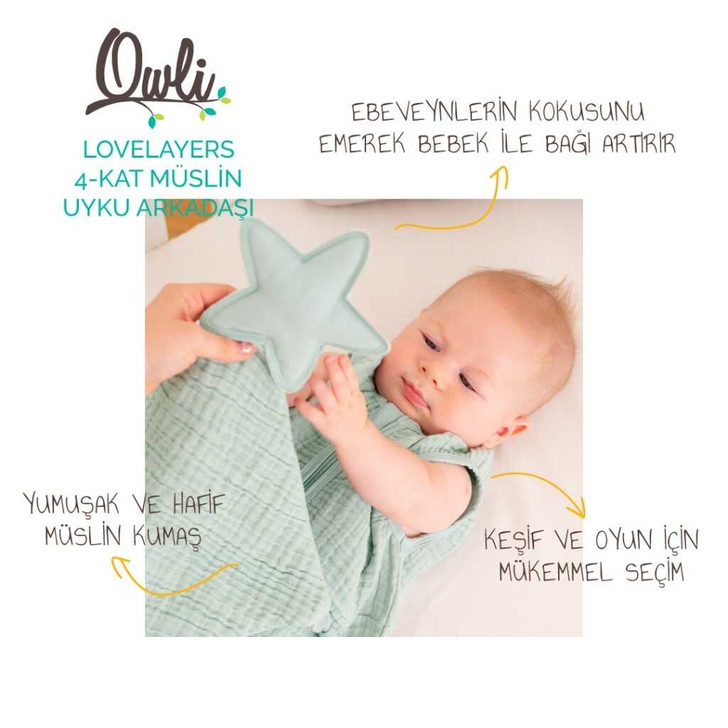 Gelince Haber Ver%100 Pamuklu Owli LoveLayers Müslin Uyku Arkadaşı Mint Yeşili