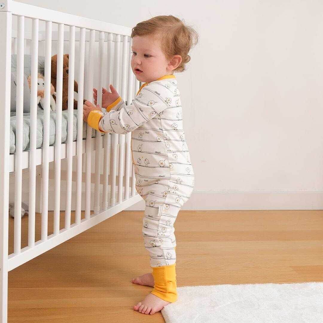 Tam boy tek yönlü fermuarı giy çıkar kolaylığı sunar. Fermuar koruması hem uyku hem oyun sırasında fermuarın ten ile temasını engeller.