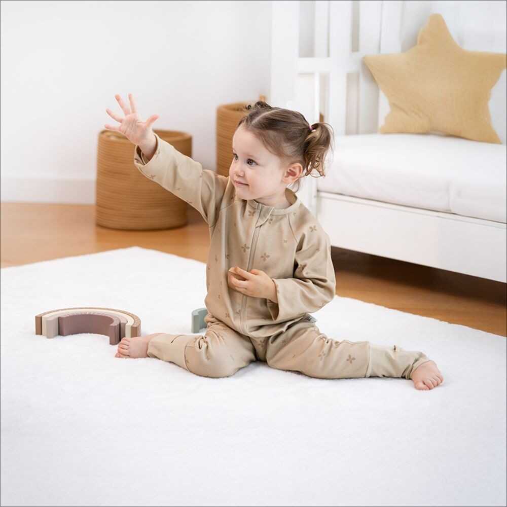 24°C ve üzeri oda sıcaklıklarında kullanılmak üzere tasarlanan bu hafif tulum, bebeğinizin rahatça hareket etmesini sağlarken vücut ısısını dengede tutar.