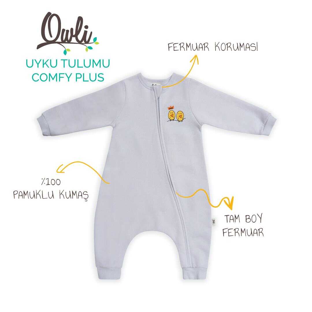 6 ay-5 yaş arası çocuklar için rahat tasarımı ve %100 pamuklu yumuşacık dokusuyla Owli Uyku Tulumu Comfy Plus sonbahar ve kış aylarının en ideal uyku tulumu!
