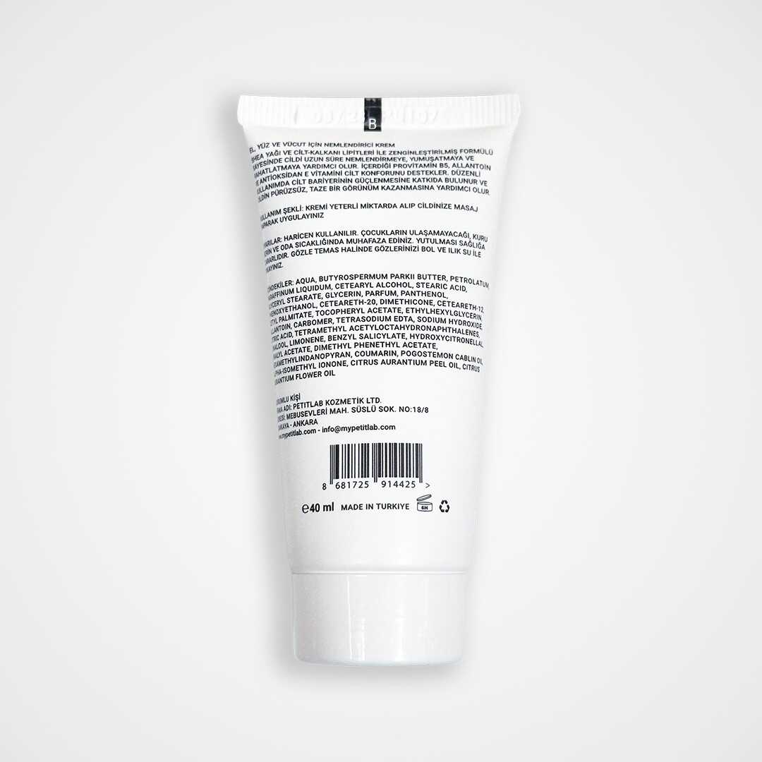 Shea yağı, cilt lipitleri, Provitamin B5, Allantoin ve E vitamini ile zenginleştirilmiş formülü sayesinde uzun süreli nemlendirme ve cilt bariyerini güçlendirme sağlayan yüz ve vücut nemlendirici krem.
