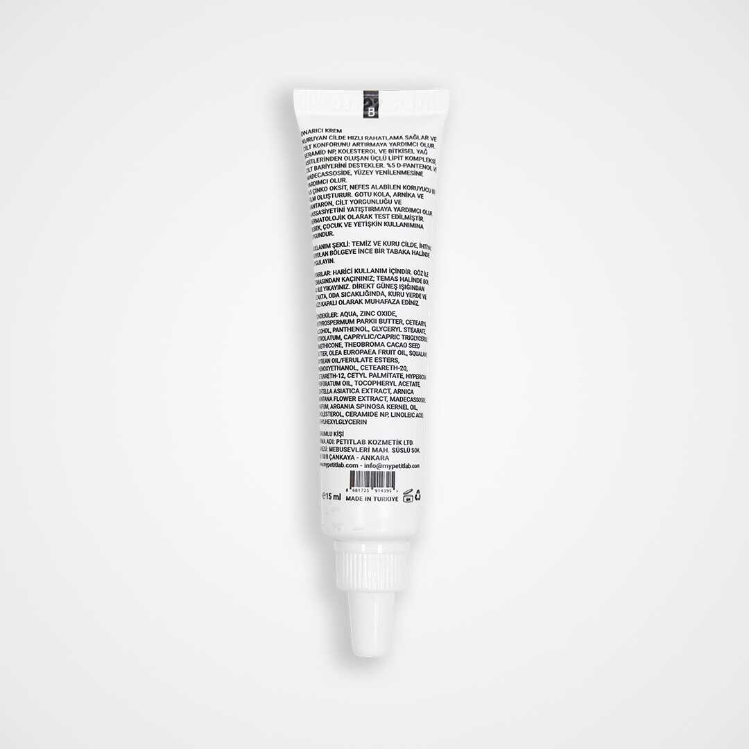 Ceramide NP, %5 D-Panthenol, %5 Çinko Oksit ve bitkisel ekstrelerle formüle edilmiş, cildi besleyen, onaran ve koruyan çok amaçlı bakım kremi.