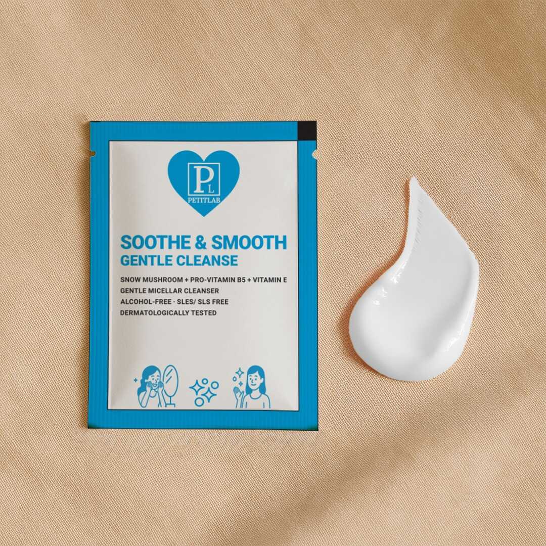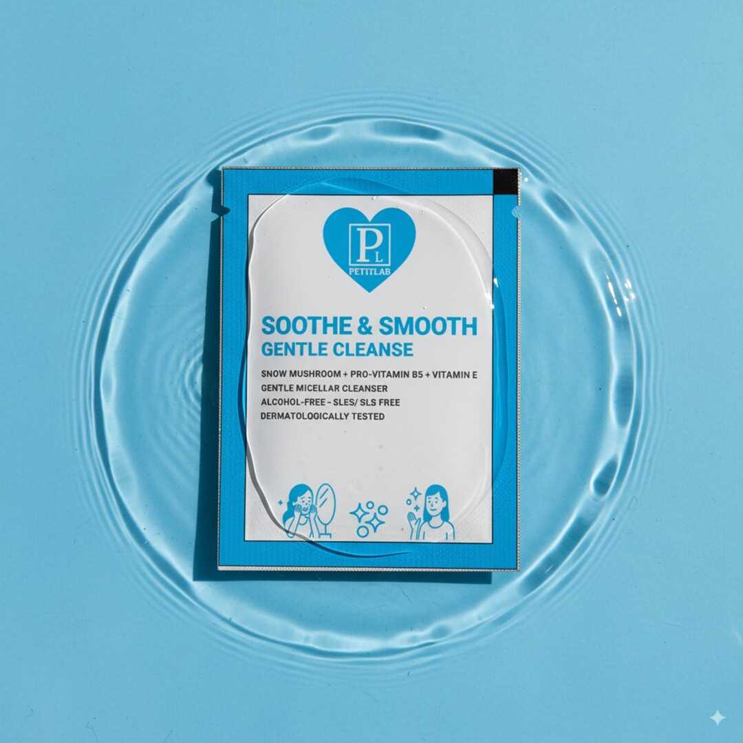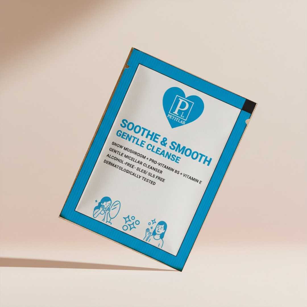 Tek kullanımlık 20 adet PetitLab Soothe & Smooth Gentle Cleanse şase, cildini kurutmadan temizler, ferahlık ve canlılık kazandırır.
